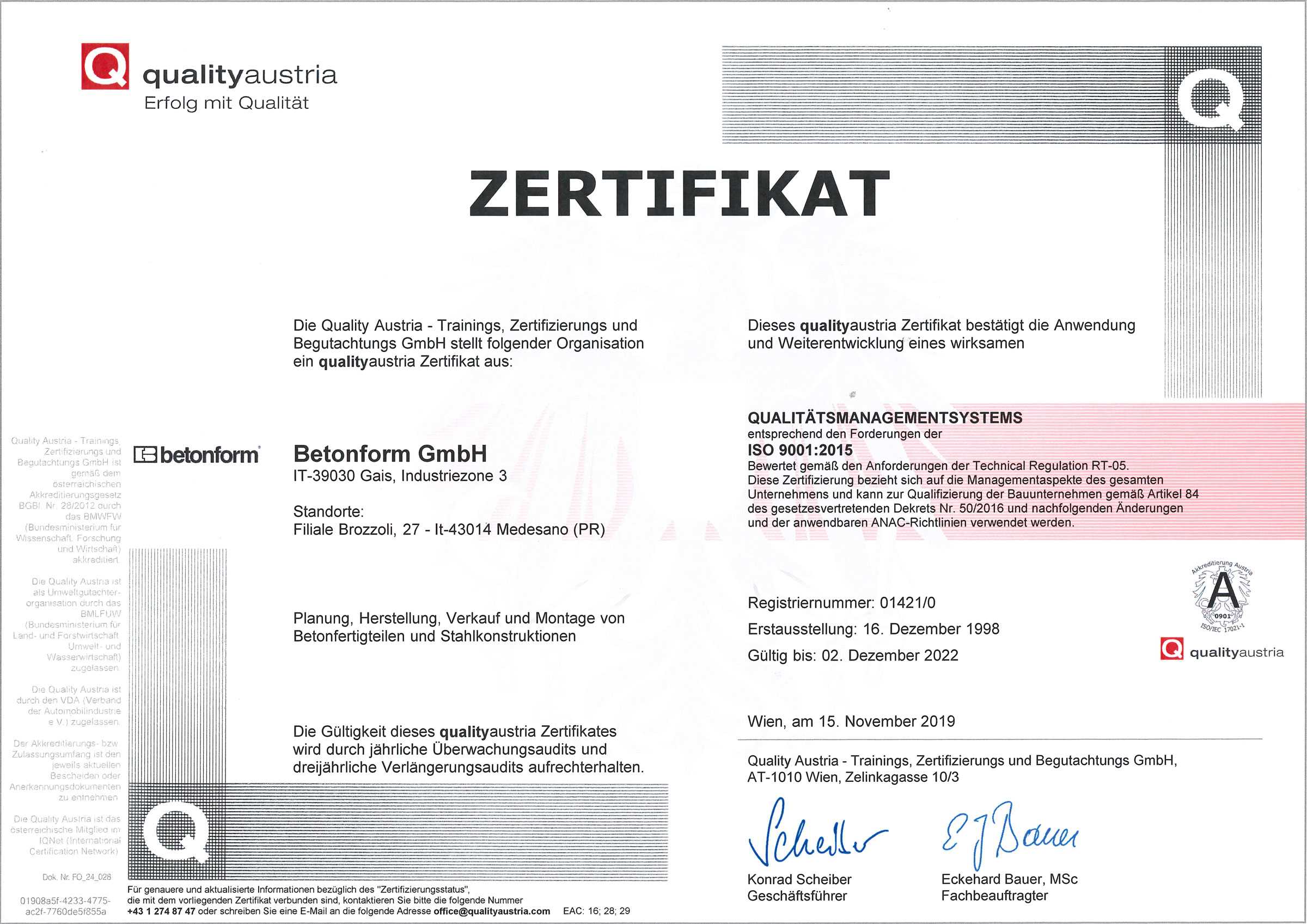 Die Zertifizierung nach ISO 9001 unterstreicht dies und auch die vielen Tausenden zufriedenen Kunden aus privater und öffentlicher Wirtschaft geben beredtes Zeugnis unserer Arbeit in den vergangenen 3 Jahrzehnten. Anhaltende Forschung und Studium und unsere langjährige Erfahrung lassen Sie auf unserer Internetseite originelle Produkte aus Beton und Holz und innovative Lösungen finden, welche den Erfordernissen einer modernen Architektur Rechnung tragen.